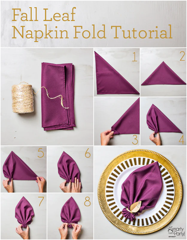 Pliega las servilletas en forma de hoja para una cena temática de jardín