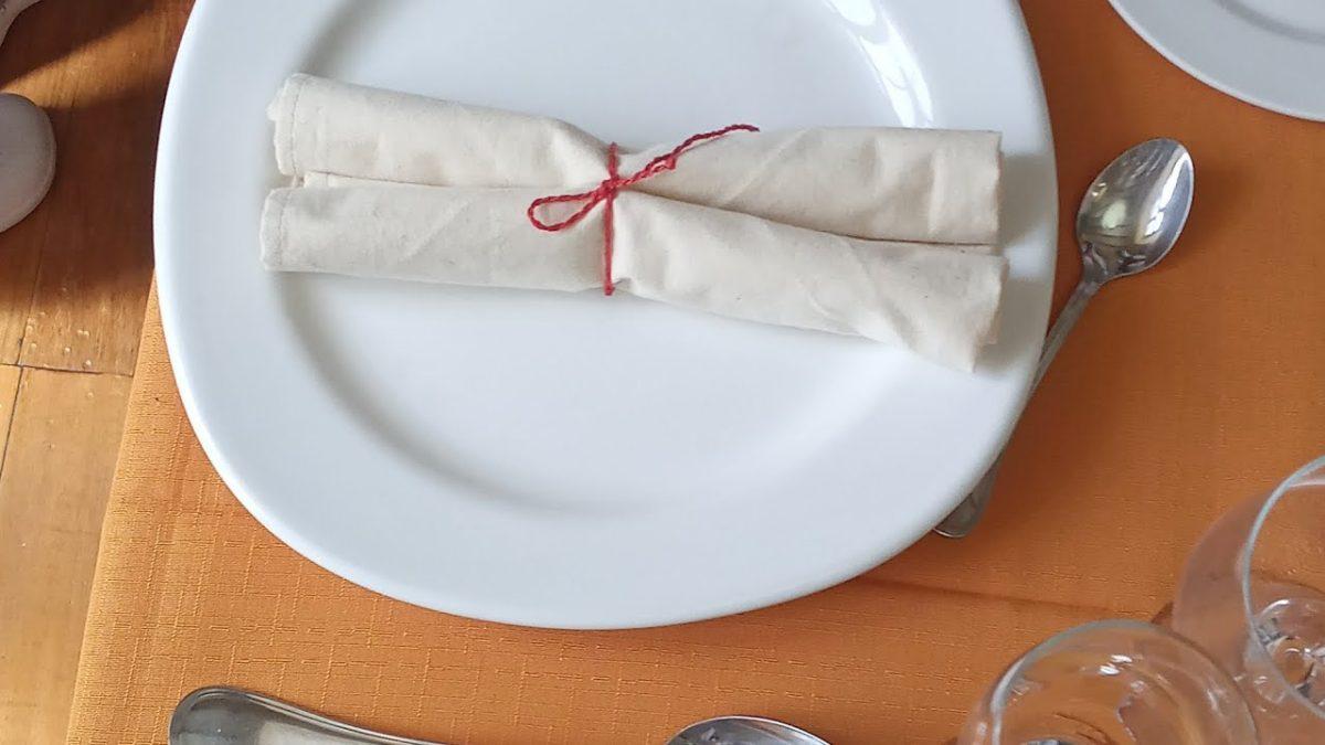 Presenta las servilletas en forma de pergaminos, colocándolas encima de los platos para un toque de sofisticación.