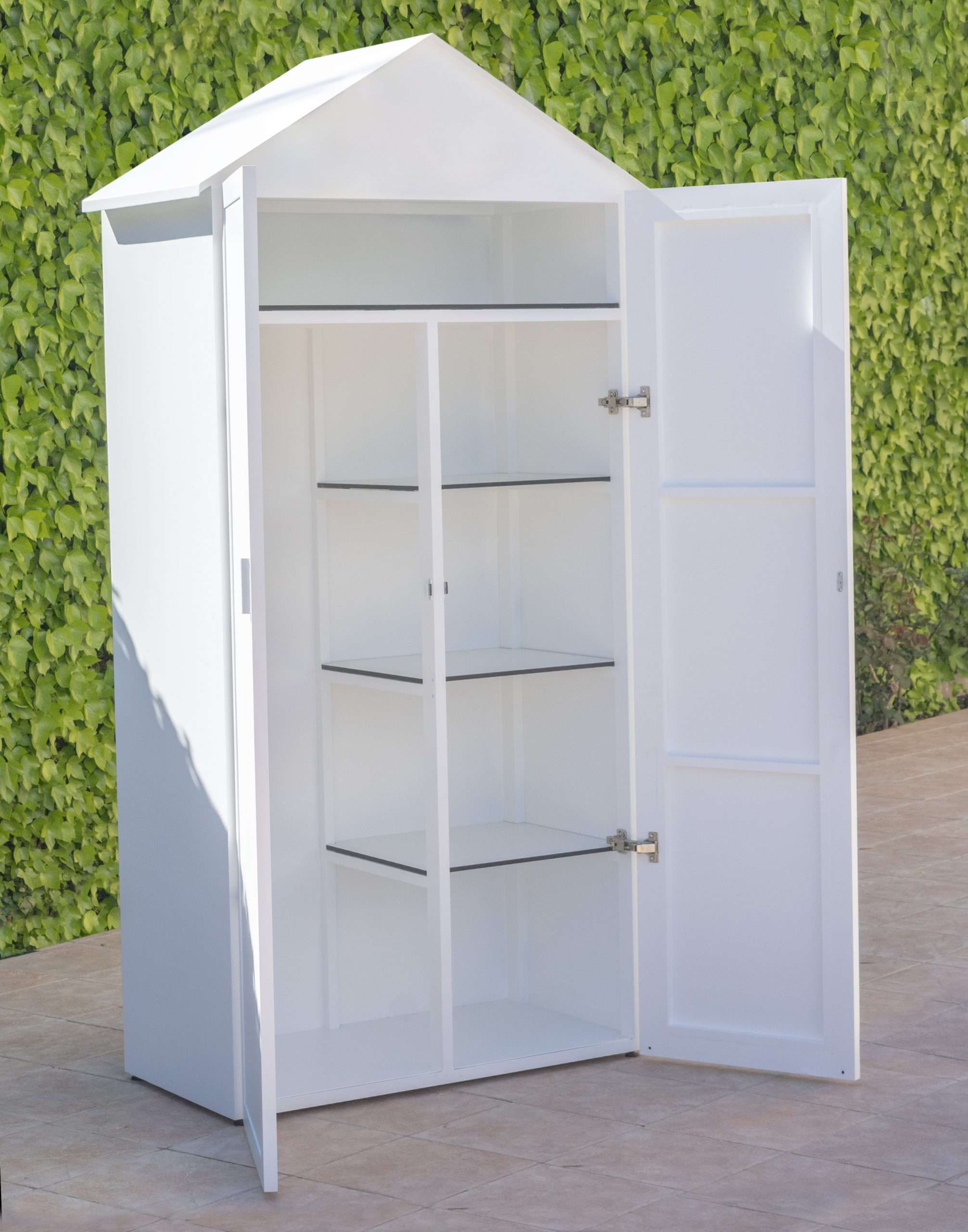 El Armario de aluminio para jardín Gardenia-200 es perfecto para almacenar herramientas de jardín y otros elementos en exteriores.