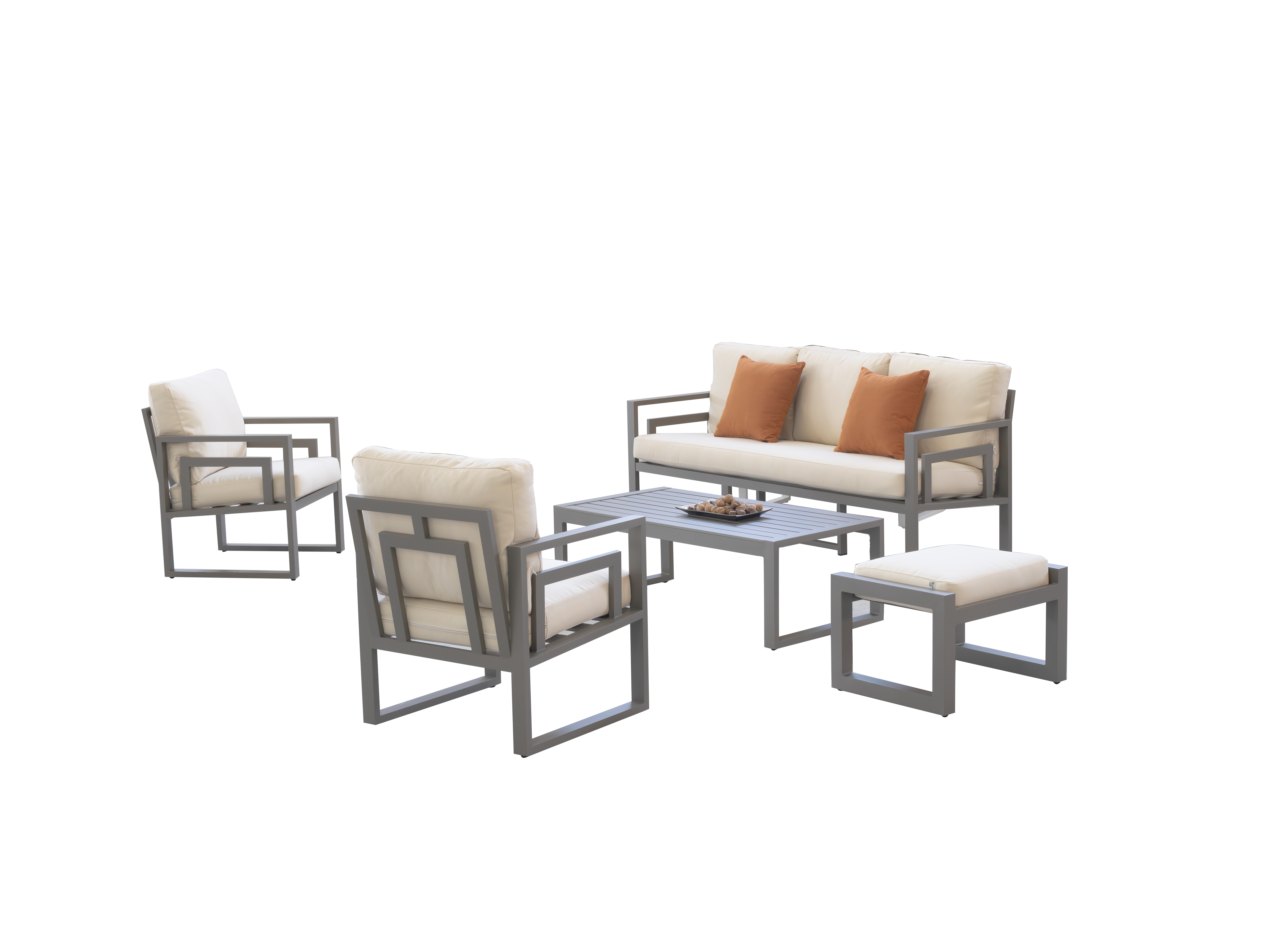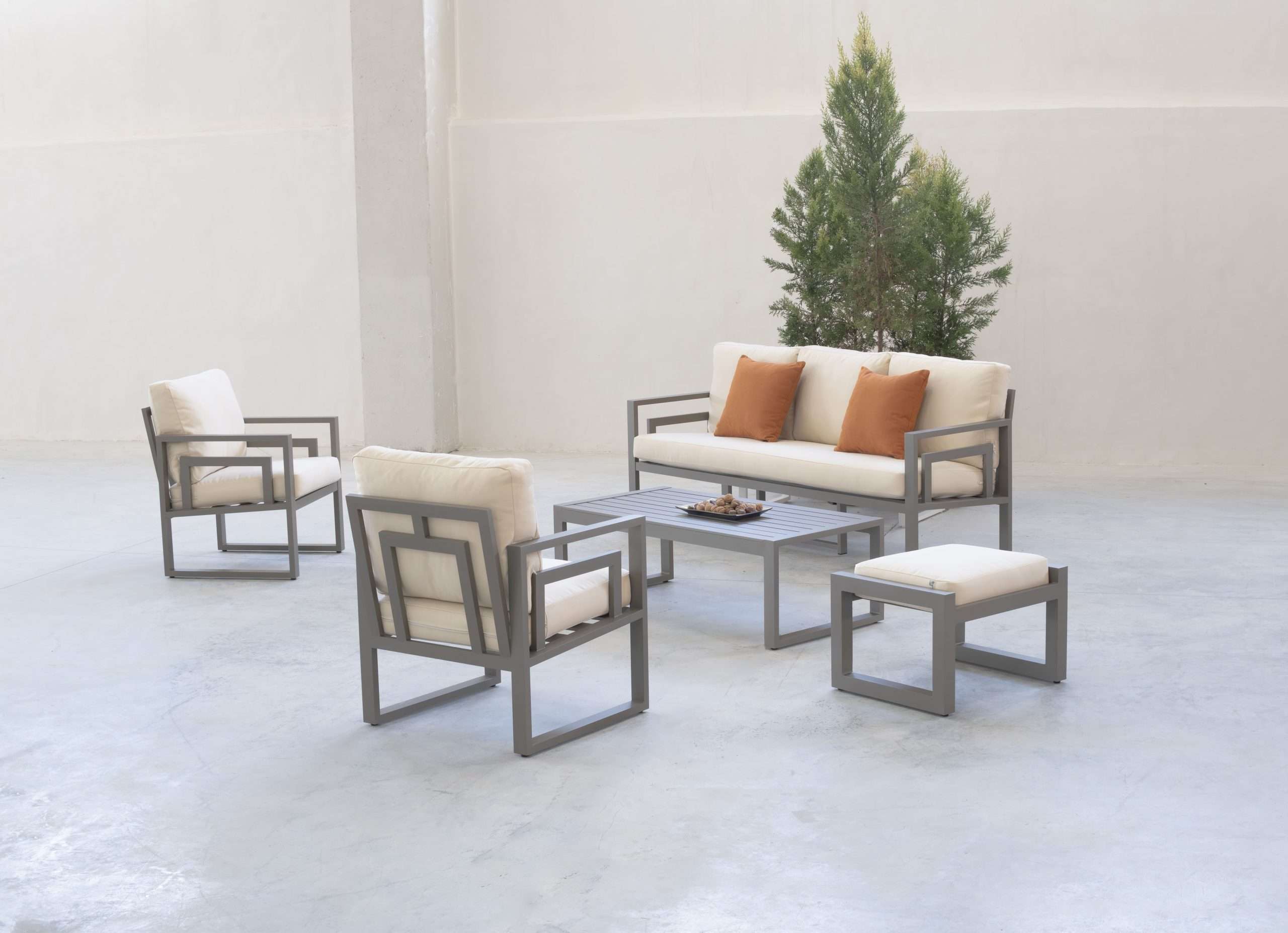 Conjunto grande y elegante, ideal para disfrutar de reuniones al aire libre o grandes espacios exteriores, con materiales duraderos y cómodos.