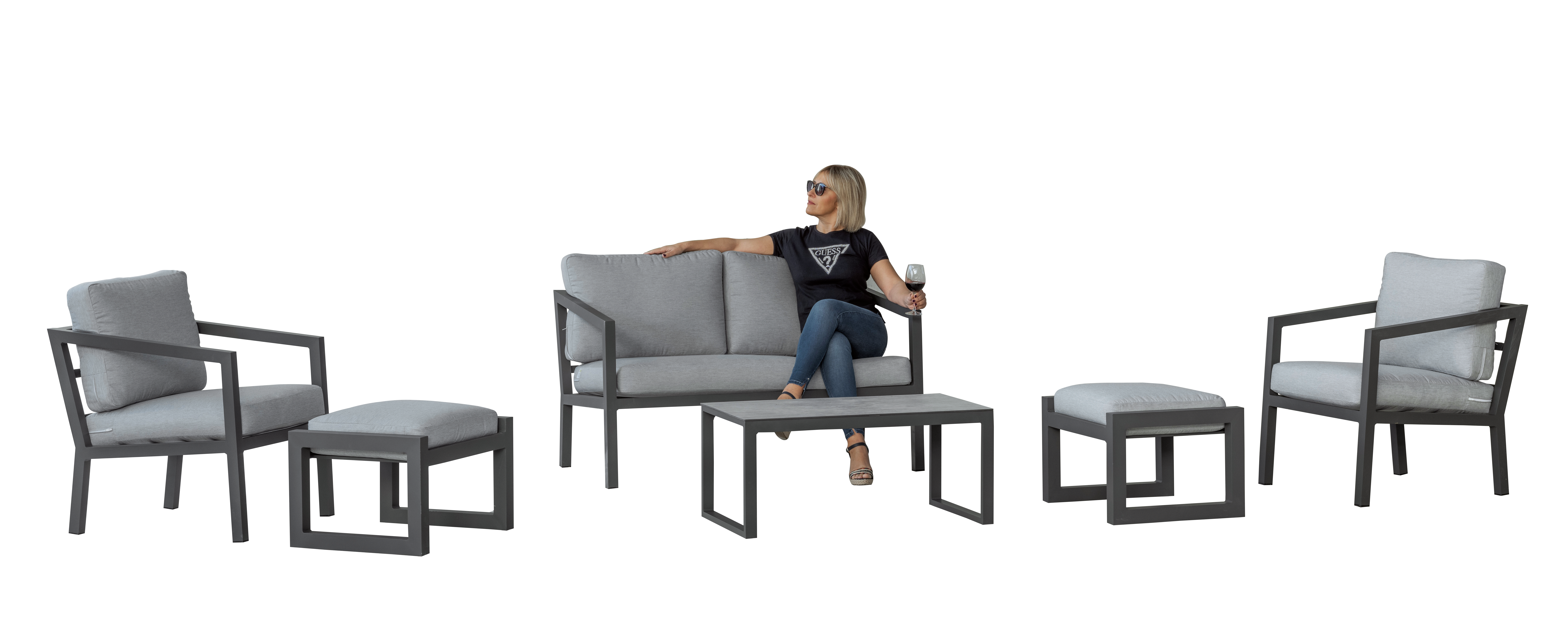 Conjunto compacto y versátil para exteriores, especialmente diseñado para jardines pequeños o terrazas con espacio limitado. Ofrece una solución práctica y cómoda para disfrutar del aire libre.