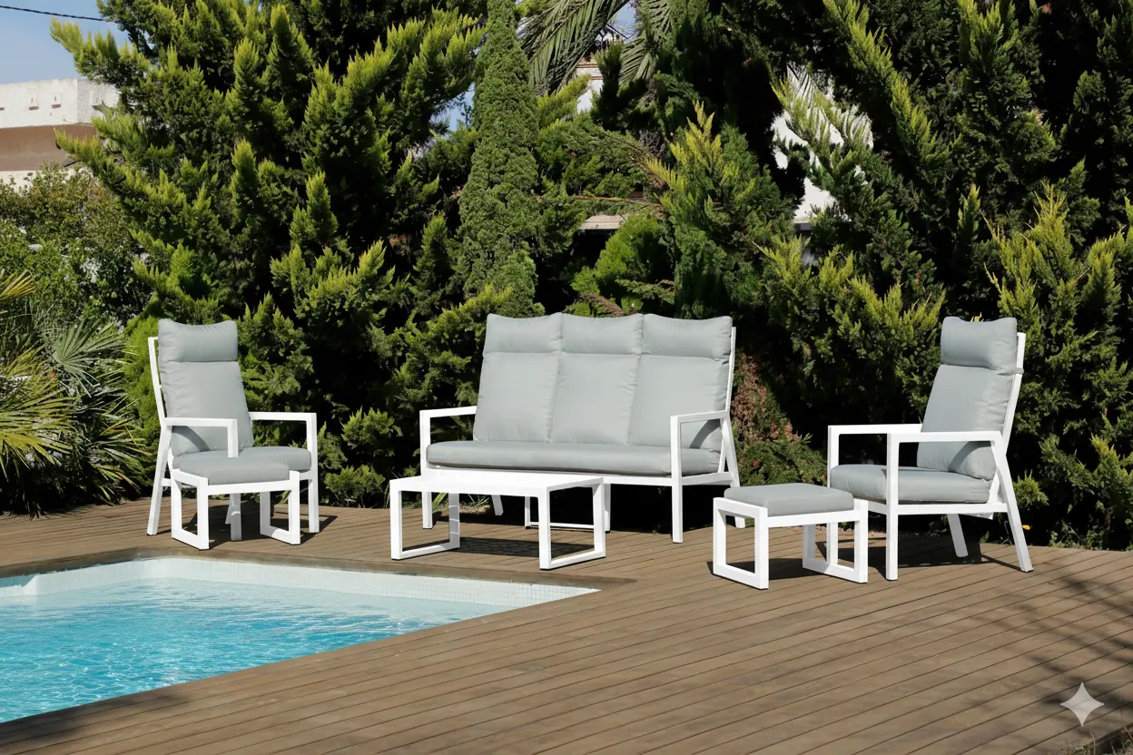 - Estructura 100% Aluminio: Cada pieza se construye sobre una sólida estructura de aluminio, un material ligero que garantiza una resistencia total a la corrosión y una durabilidad a toda prueba, ideal para el clima exterior.