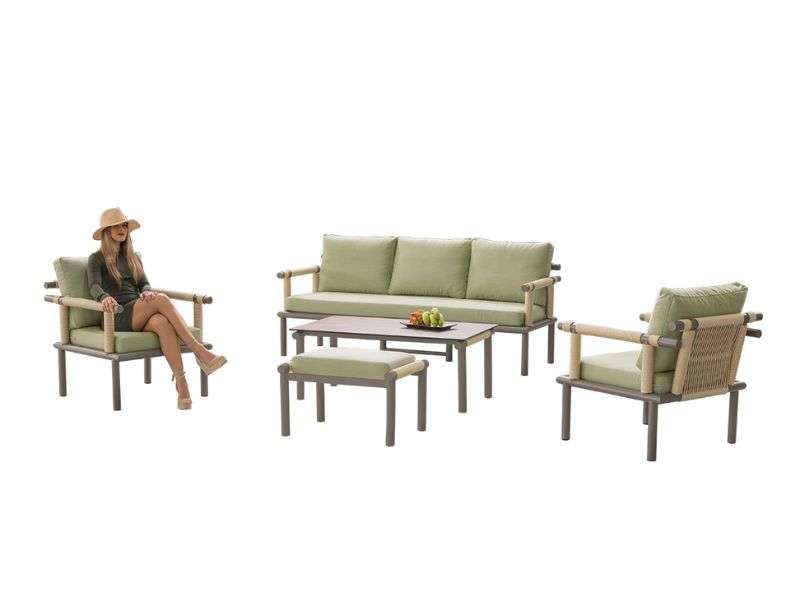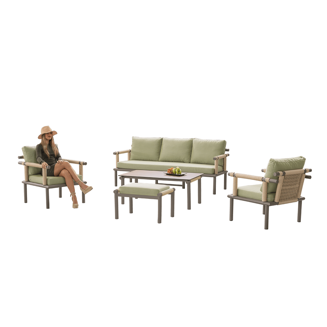 El Conjunto de Terraza Urbia-8 es una opción funcional y elegante, ideal para quienes buscan un set moderno para su espacio exterior. Con un sofá de 3 plazas, dos sillones y una mesa de centro, este conjunto es resistente a las inclemencias del clima, brindando confort y estilo en tu terraza o jardín.