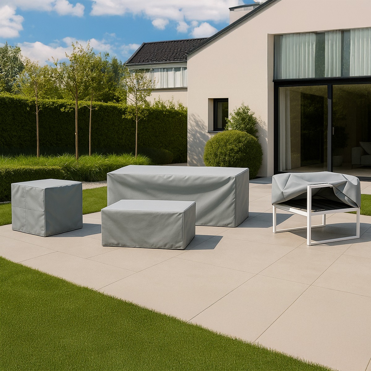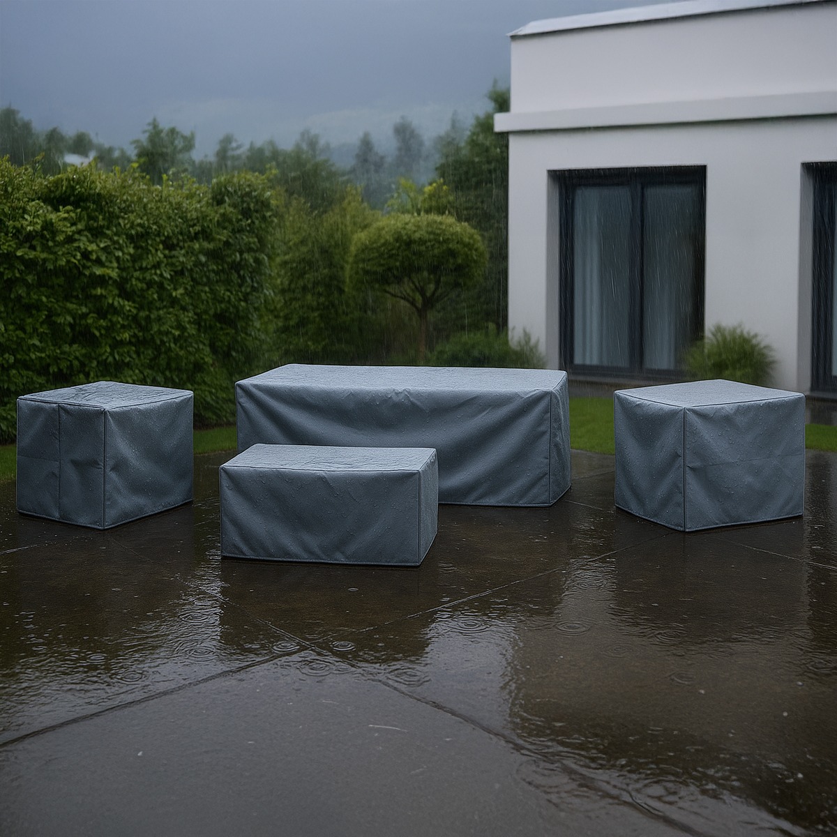 Las fundas para conjuntos de jardín son la forma más práctica y segura de proteger tus muebles de exterior frente a las inclemencias del tiempo. Confeccionadas en tejido técnico impermeable y transpirable, resisten el sol, la lluvia, la humedad y la suciedad, garantizando que tu conjunto de mesa y sillones se conserve en perfecto estado durante más tiempo.
