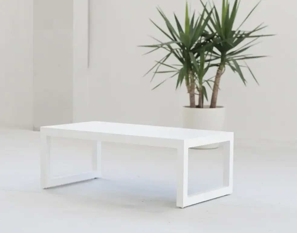Hay diseños que definen un espacio. La Mesa de Centro Alhama-120 es una de esas piezas. Heredando el carácter escultórico y la pureza de líneas de sus hermanas mayores, esta versión de 120 cm ha sido concebida para llevar el diseño minimalista a una nueva dimensión de versatilidad. Su construcción íntegra en aluminio la convierte en la solución ideal para terrazas contemporáneas que buscan un punto focal de gran impacto visual, pero con unas proporciones equilibradas y funcionales.
