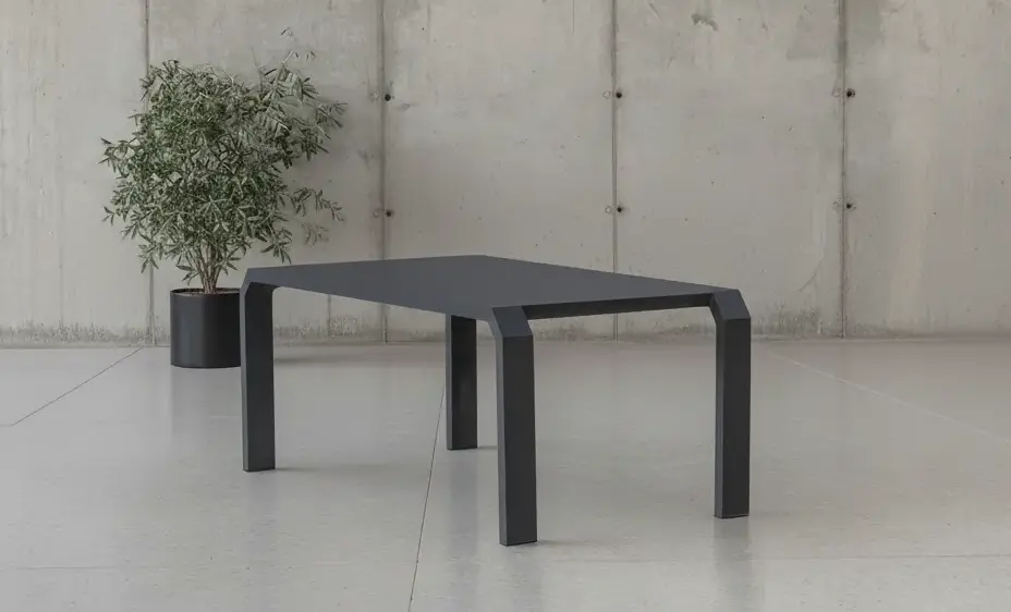 Fiel al estilo de la colección Zafiro, la mesa presenta un diseño de líneas puras y una presencia que no deja indiferente.