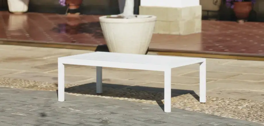 La Mesa de Centro Basic-90 es la pieza esencial para completar tu salón de exterior. Fabricada 100% en España, su estructura y tablero de aluminio garantizan máxima ligereza y una total resistencia a la intemperie. Su diseño minimalista y funcional se adapta a cualquier conjunto, aportando estilo y durabilidad.