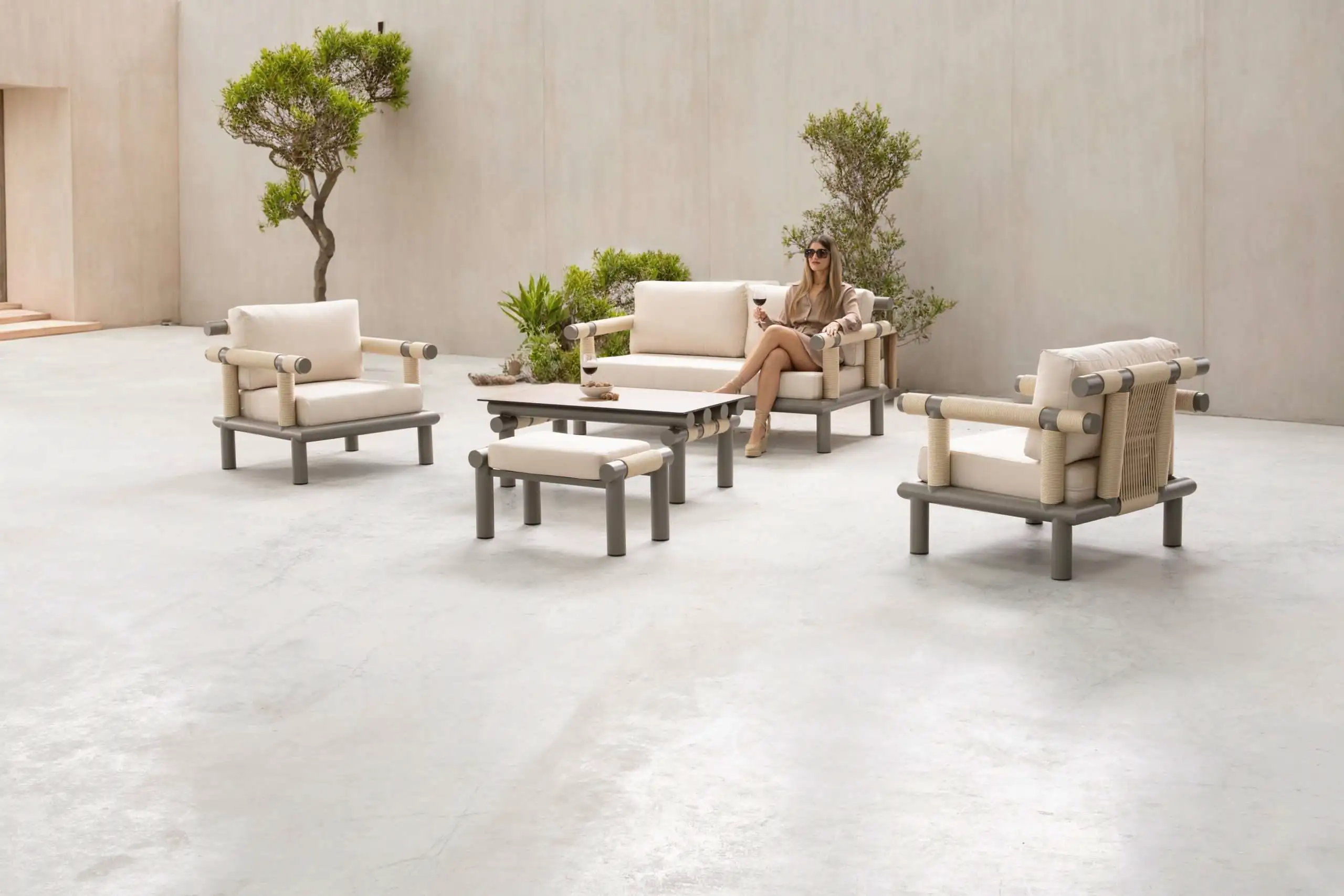 Toda gran conversación necesita un punto de encuentro. La Mesa de Centro Nusa ha sido concebida para ser ese lugar: el corazón de tu salón exterior donde el diseño y la funcionalidad convergen. Es la pieza que no solo complementa a la perfección los sillones y sofás de la colección, sino que les da un propósito, creando un ambiente completo, elegante y listo para ser disfrutado.