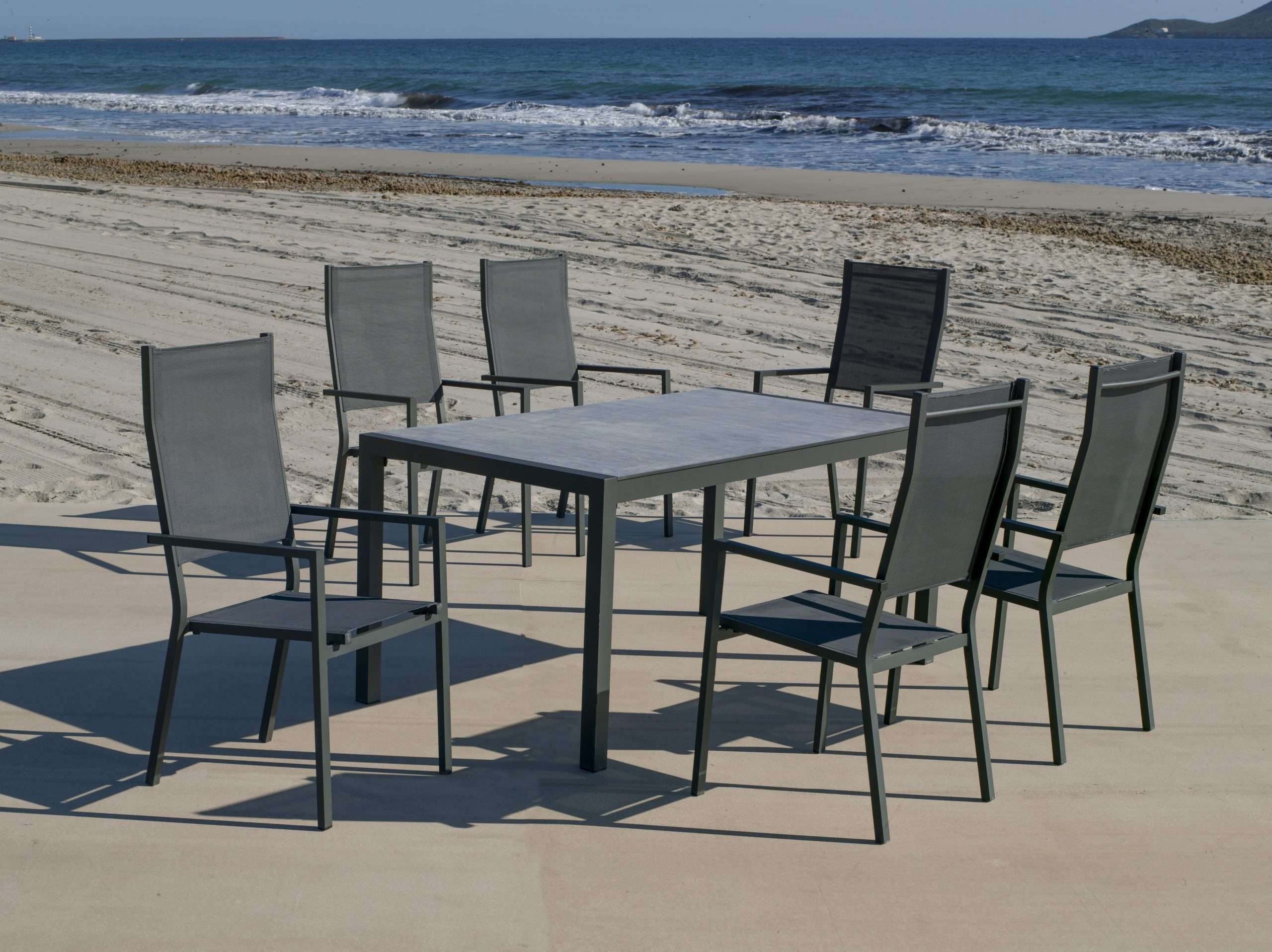 La mesa de jardín Palermo 160 ofrece un tablero cerámico resistente a la intemperie y arañazos, combinado con una estructura de aluminio ligera y estable. Su diseño sofisticado y atemporal la hace ideal para cualquier terraza o jardín.