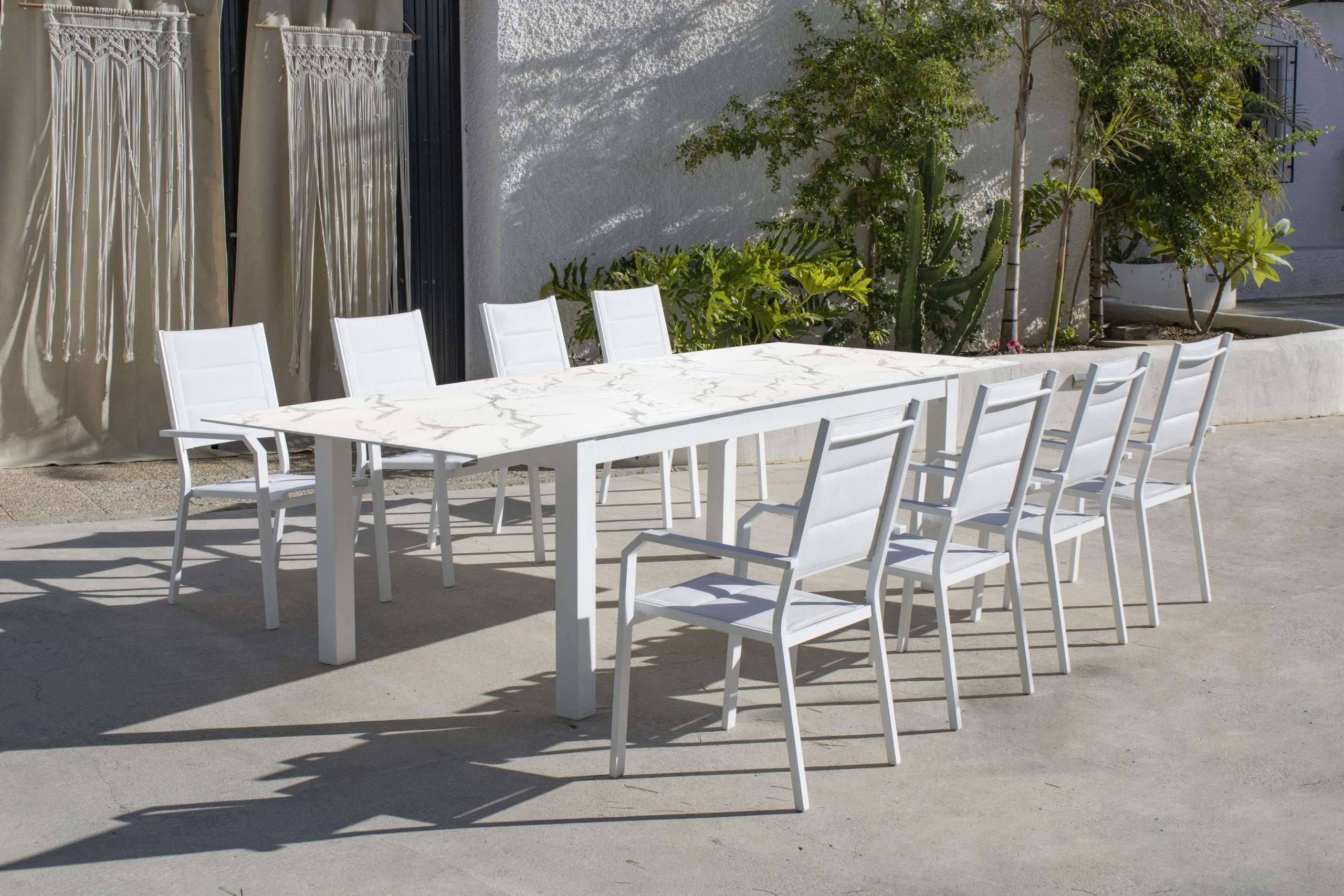 La mesa extensible para terraza Camelia 220 es la opción perfecta para quienes buscan estilo y practicidad en sus espacios exteriores. Su tablero de material fenólico ofrece una superficie resistente a la humedad, los rayos UV y el desgaste, garantizando una larga vida útil con mínimo mantenimiento. La estructura robusta proporciona estabilidad, mientras que su mecanismo de extensión permite ajustar su tamaño de manera sencilla, adaptándose a distintas ocasiones. Su diseño moderno y sofisticado la convierte en el centro de atención en terrazas, patios o jardines, ofreciendo comodidad y durabilidad para disfrutar de reuniones al aire libre con total tranquilidad.