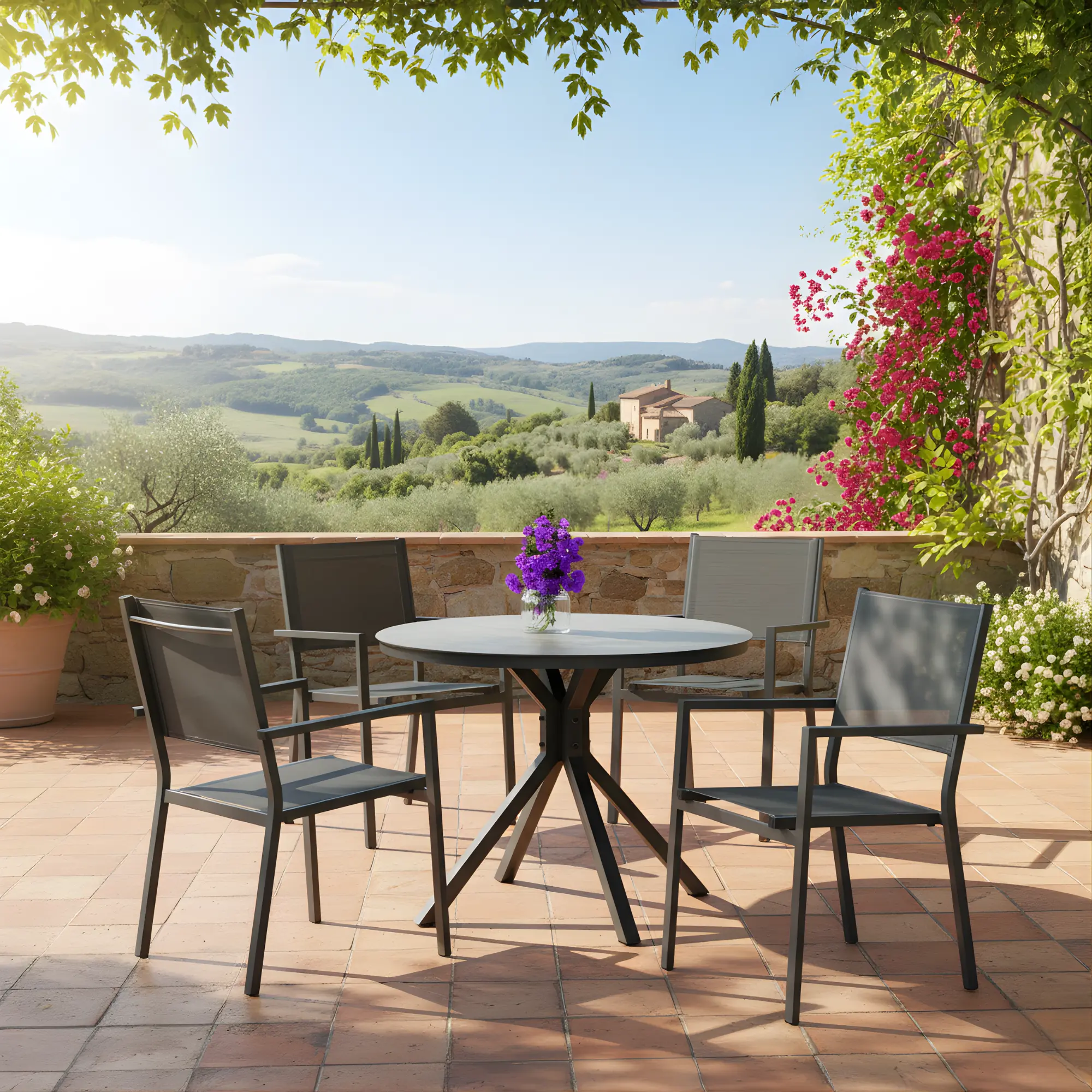 La mesa Giglio 100 es una opción compacta, moderna y funcional para espacios al aire libre. Con 100 cm, permite sentarse cómodamente a 4 personas . Su estructura de aluminio y tablero de HPL aseguran resistencia frente al clima y un mantenimiento sencillo. Perfecta para terrazas, patios y jardines .