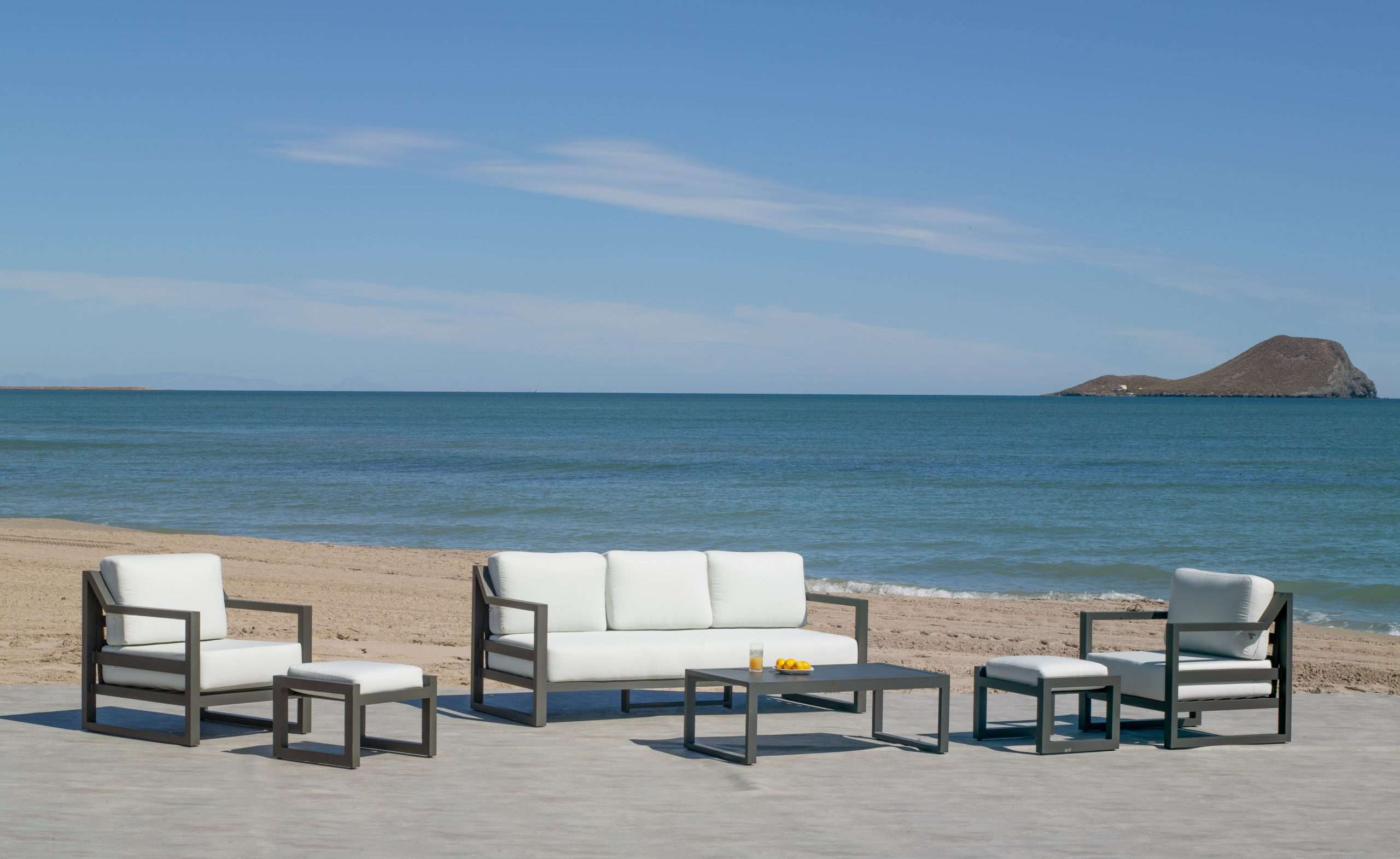 El Set de Sofá de Aluminio para Exterior Dublián-8 combina elegancia, confort y resistencia para transformar tu espacio al aire libre. Incluye un sofá de 3 plazas, dos sillones y una mesa de centro, fabricados con una estructura de aluminio duradera y cojines de alta calidad. Producto 100% fabricado en España.