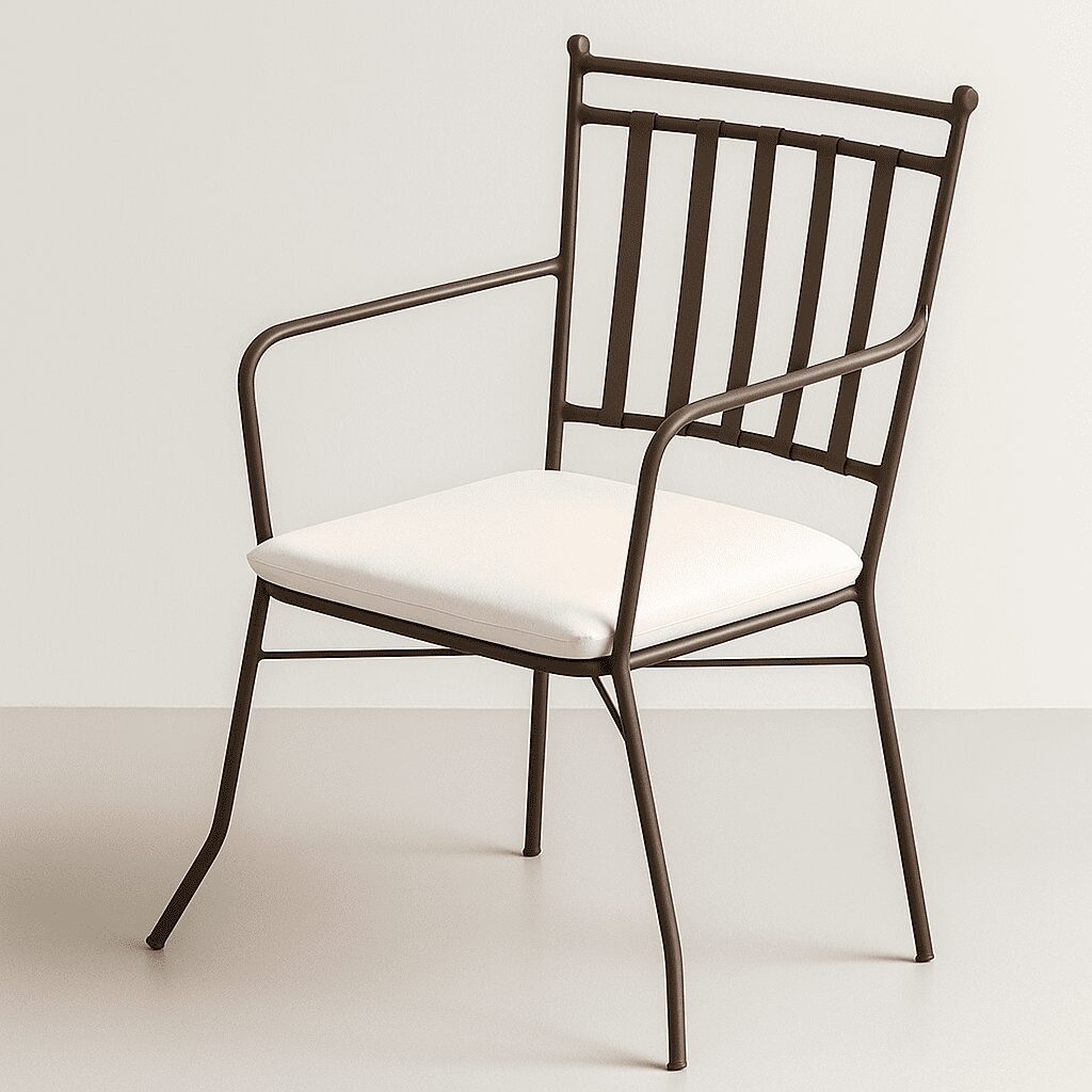 El asiento cuenta con un cojín tapizado en color blanco (personalizable), que aporta un extra de comodidad y un contraste visual atractivo frente a la estructura metálica oscura. Su estilo versátil encaja tanto en ambientes contemporáneos como en espacios de inspiración clásica o industrial. La silla de hostelería Shifa es perfecta para quienes buscan una opción resistente, elegante y funcional, capaz de combinar estética y confort en entornos profesionales con un toque distinguido.