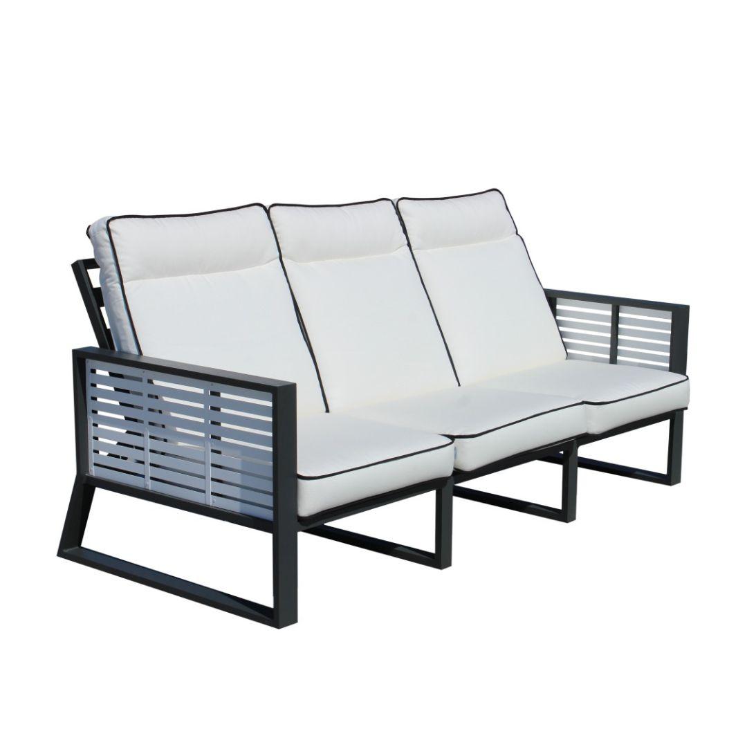 El sofá de exterior Samira, con estructura de aluminio bicolor, ofrece un diseño elegante y moderno. Sus cojines con ribete añaden un toque lujoso, proporcionando comodidad y estilo a cualquier espacio exterior.